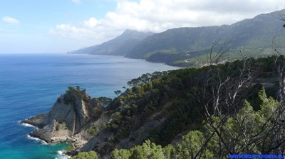 Consciente de no seguir el orden cronológico de la publicación de las excursiones, adelanto ésta, por ser buena época para hacerla, ya que permite darse un refrescante chapuzón en una bonita cala de la zona Sur de la Serra de Tramuntana.